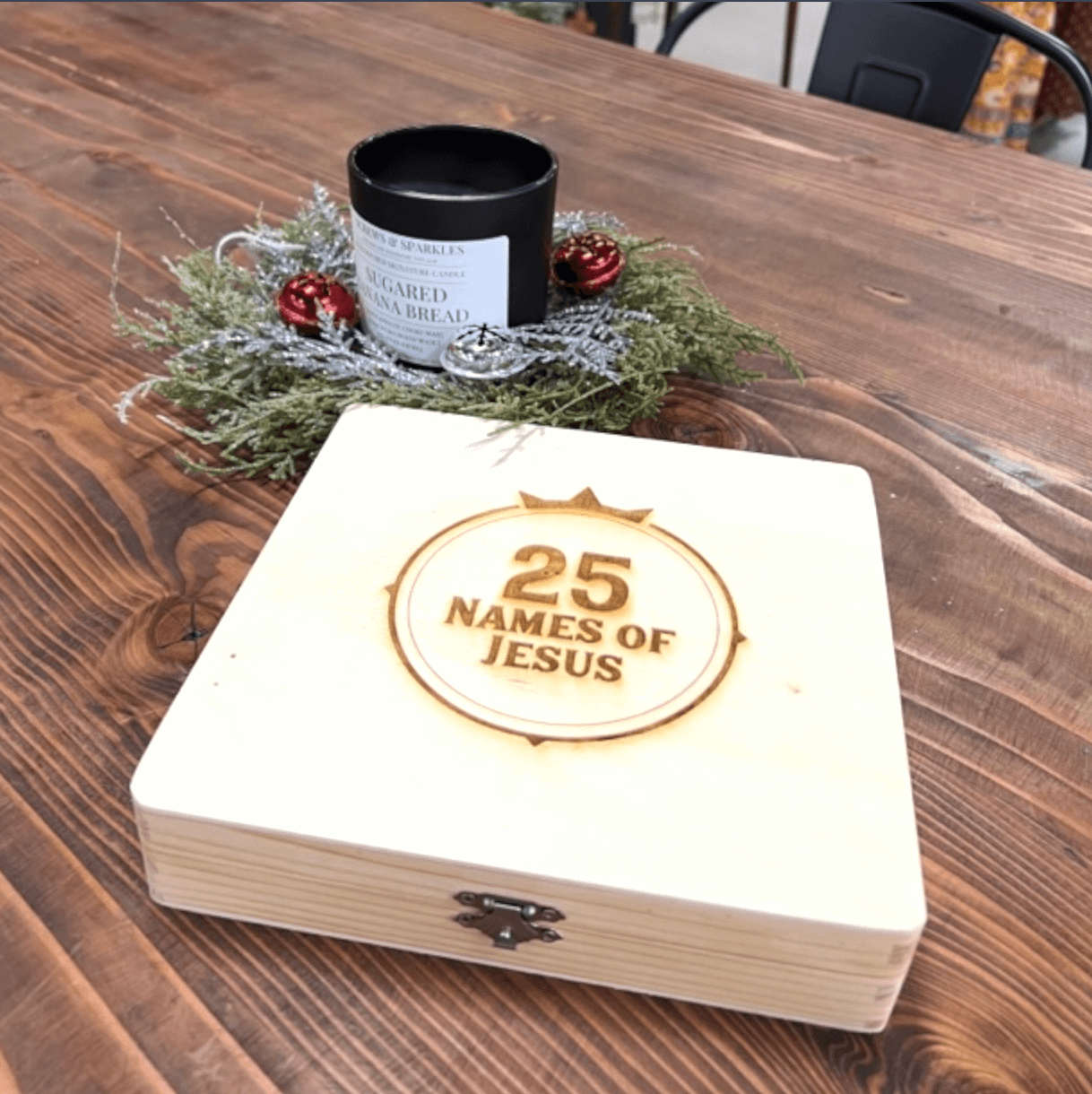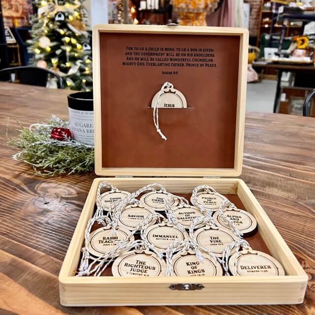Let me tell you how incredibly excited we are to be launching these box sets! 25 Names of Jesus is just the tip of the iceberg of how many names he has, but what a beautiful way to celebrate him, as he is the reason for the season. This set includes 25 ornaments, each containing a name Jesus has been referred as, as well as a verse that mentions that name. You can start by putting one ornament on your tree Dec. 1st and reflect on that verse for the day. There are 25 ornaments, so the last one will be placed on your tree on Christmas! It’s a wonderful tradition to celebrate with your family throughout the years, or give it as a gift. It comes in an engraved wood box, and the interior is lined with the perfect leatherette details 🙌🏻