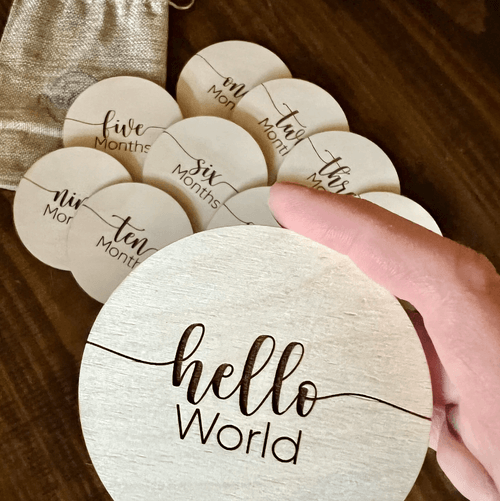 These adorable monthly milestone trackers are the perfect way to document your precious little one's growth! Just place the wooden plaque next to your baby and grab a picture. Perfect for unique baby shower gifts, birth announcements, photography sessions and more!