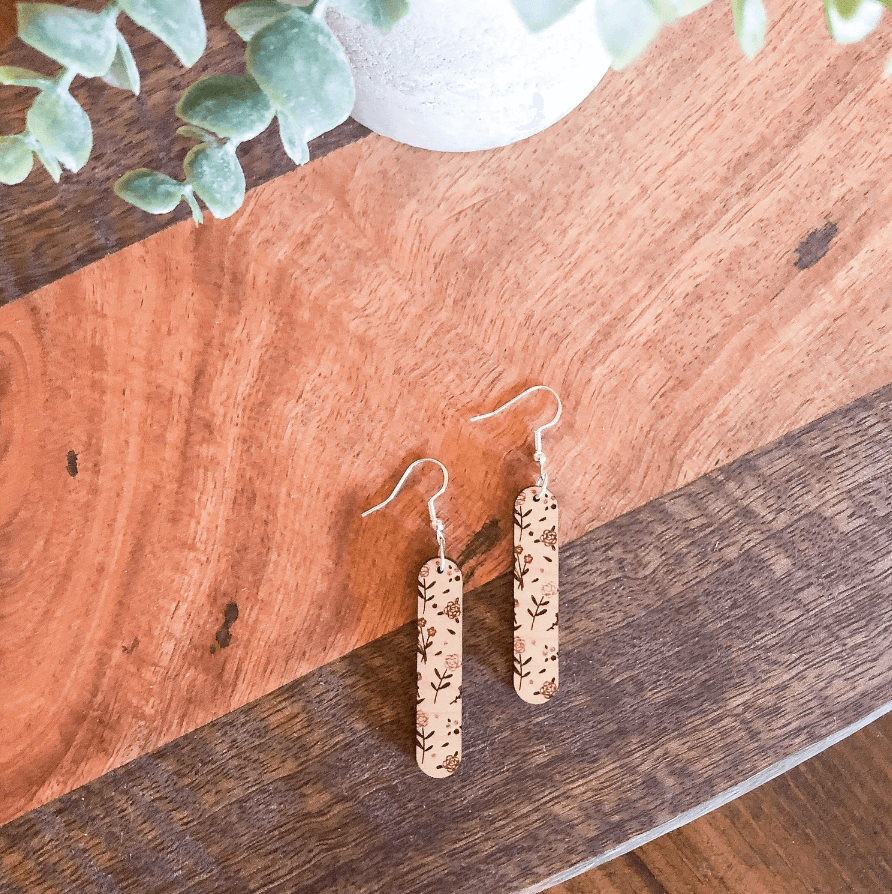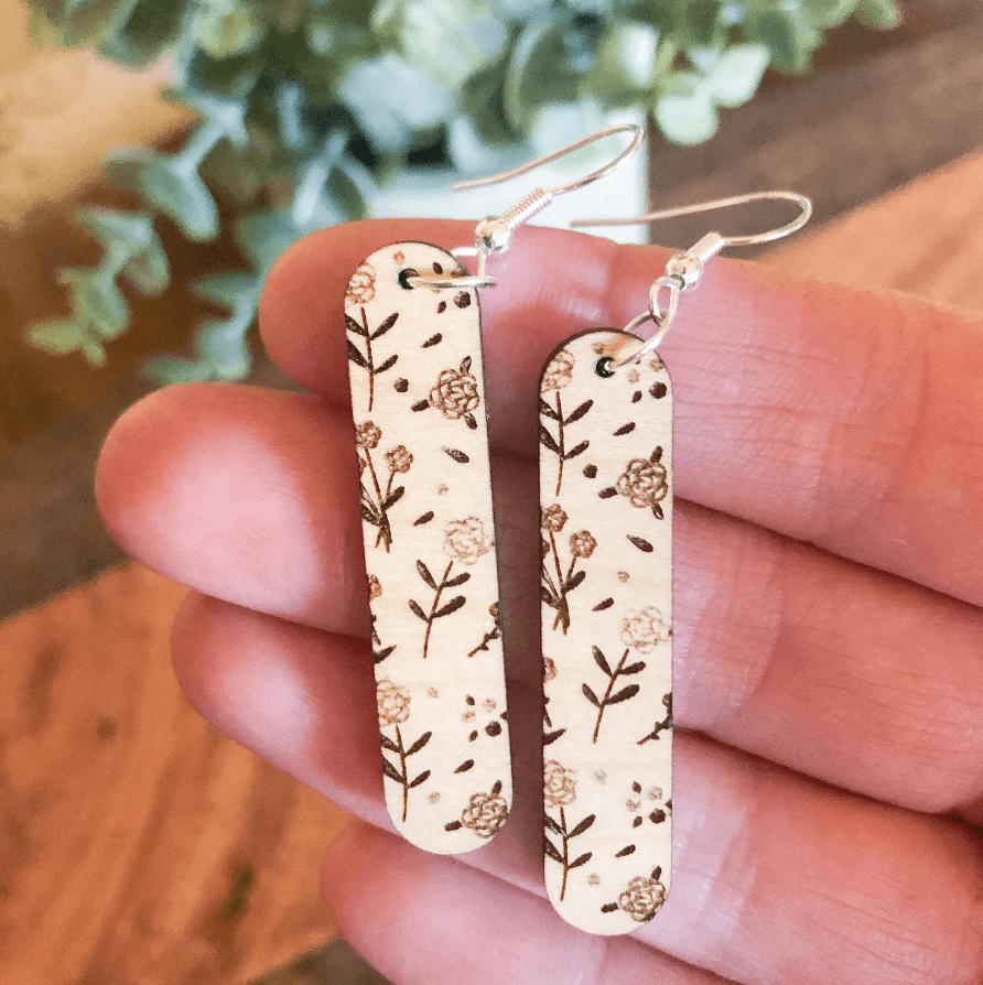 Floral Wooden Dangle Earrings