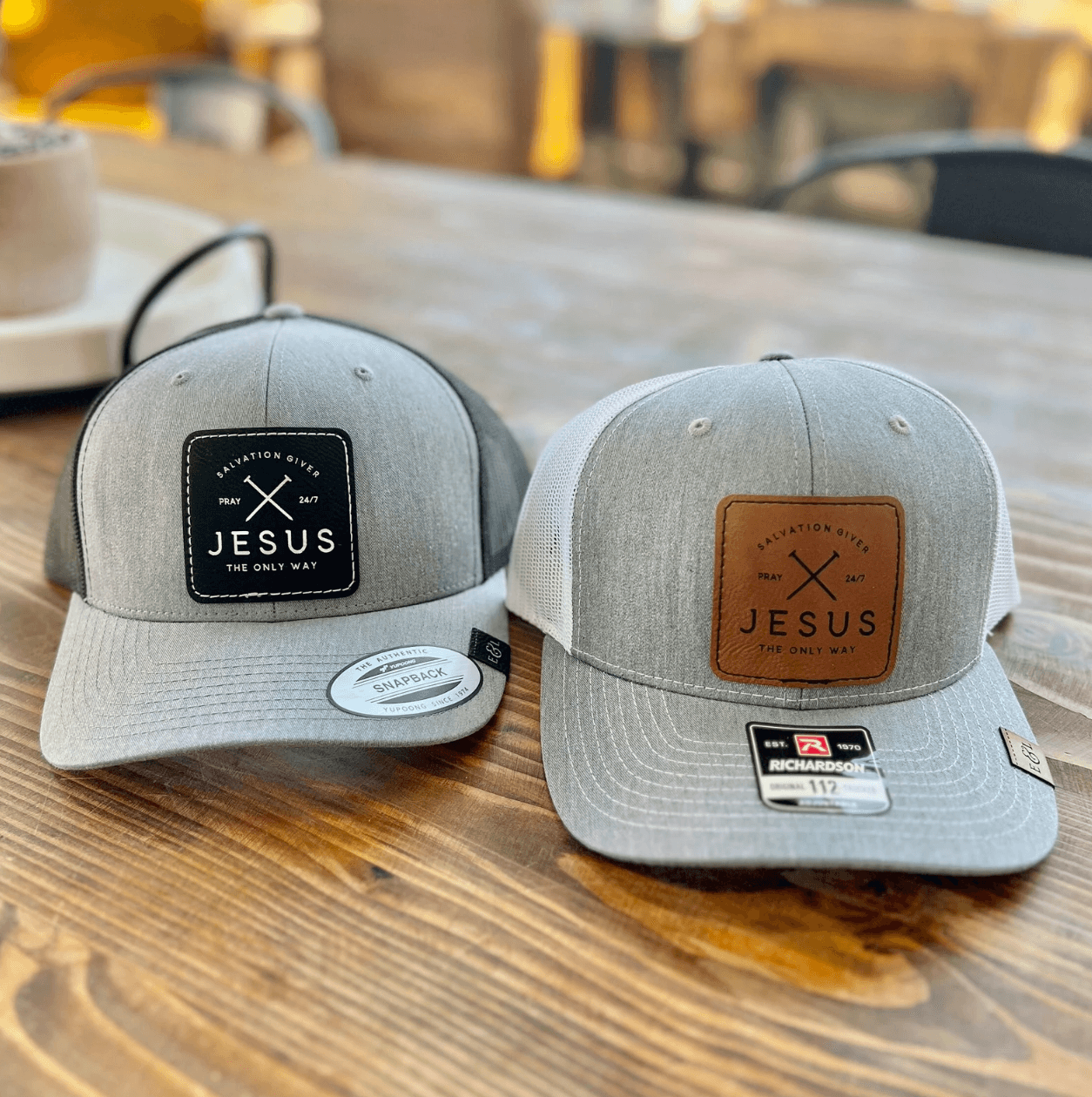 Introducing our Richardson 112 style trucker hat with a Powerful Message: "Salvation Giver, Jesus The Only Way. "Unleash the power of faith and style with our exclusive hat featuring a striking vegan leather patch that boldly proclaims, "Salvation Giver, Jesus The Only Way." Crafted with a deep sense of purpose, this hat is not just an accessory – it's a declaration of faith, grace, and a reminder of the enduring love of Jesus.