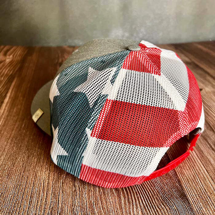 Celebrate the spirit of America with our Richardson 112 Stars & Stripes Trucker Hat, featuring a distinctive wood veneer and leather riveted patch proudly displaying "*MERICA". This hat blends classic style with a bold statement, perfect for showcasing your patriotic pride.