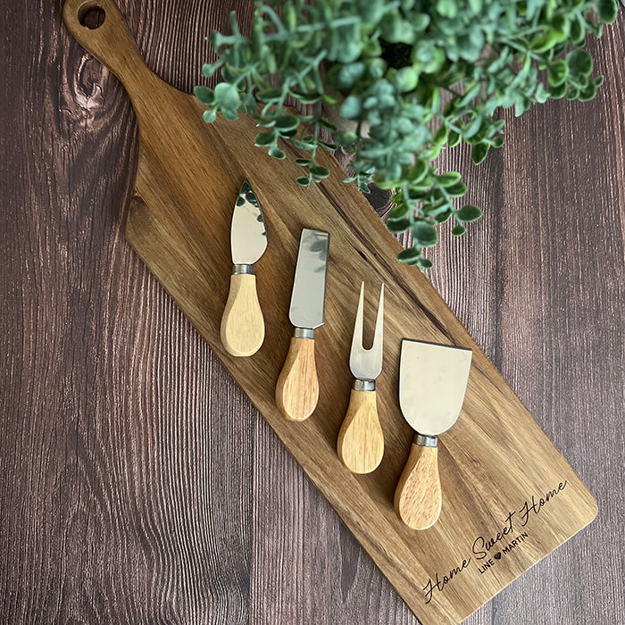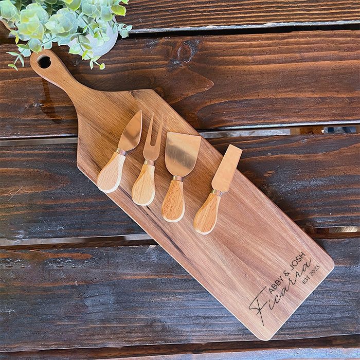 Personalized Acacia Wood Cutting Board Set with Cheese Knife Set