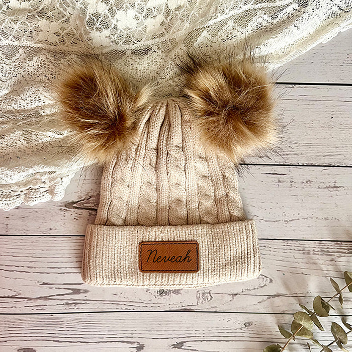 Wrap your little one in warmth and style with our Personalized Knitted Infant & Child Beanies! These adorable winter beanies feature playful double pom poms and are perfect for keeping your child cozy during chilly days. Each hat is customized with a leather patch that can be personalized with your child's name, making it a unique and thoughtful gift for any occasion.
