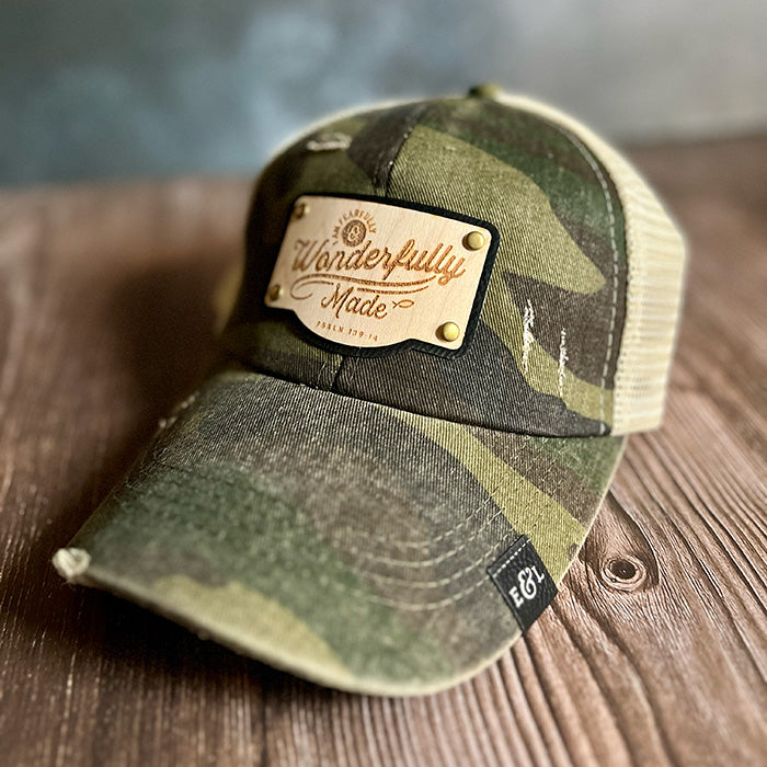 A hat with a message that matters. Designed with women in mind, these hats feature a ponytail opening for comfort and style—perfect for everyday wear. Each patch is crafted with real wood veneer layered over vegan leather, making every detail meaningful and unique. Whether you’re grabbing coffee, heading to Bible study, or gifting a friend, this hat is the perfect blend of faith, fashion, and function.