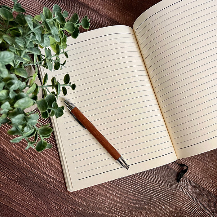 - Saddle-stitched leatherette cover for a sleek and durable design